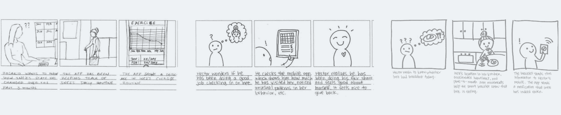 We carefully selected the scenarios we thought that are most valuable and collectively worked on the stories and documented the selected set of scenarios as storyboards that communicate to an external audience how the app co-constructs value to the personas.